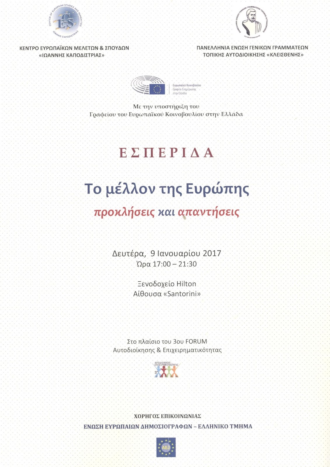 Η Εσπεριδα προβαλε την συνειδητοποιηση που υπαρχει οτι "Η Ευρωπη" σημερα δεν εχει καμια σχεση με το αρχικο οραμα, και πως εαν δεν αλλαξει κατι δραστικα, θα διαλυθει σε κομματια "οπως τα σπορια του ροδιου που η παραδοση θελει να "σπαμε" την πρωτοχρονια.